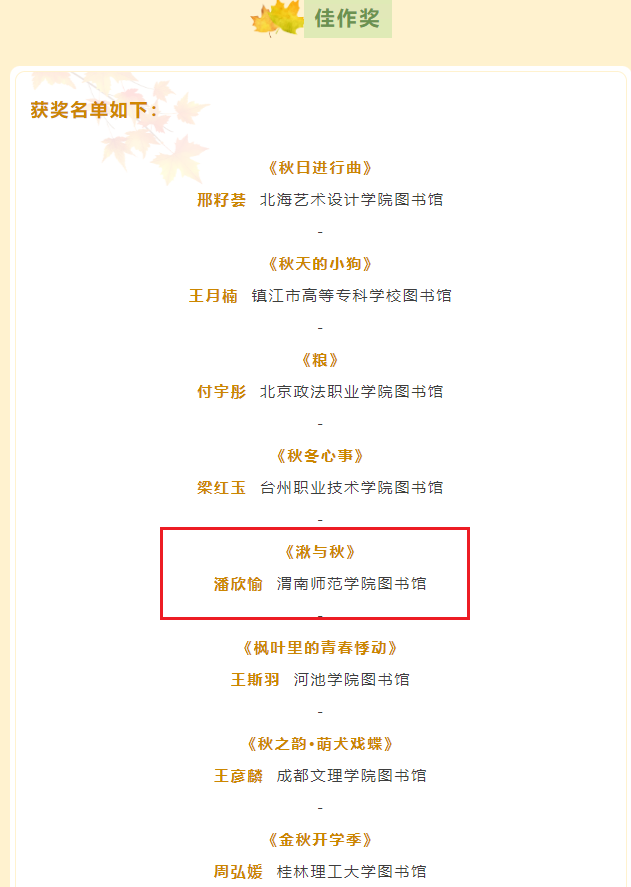 【金秋创想·开学启航】 金秋开学季主题图像创作活动已圆满结束啦!我校外国语学院日语251班潘欣愉同学作品《湫与秋》获得【佳作奖】。
