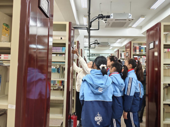 活动由学生勤工俭学馆员全程引导,为小读者讲解了图书馆的概况、书库布局、AI渭小图智能检索、经典图书共享,知识殿堂的独特魅力,吸引着小读者稚嫩的目光。